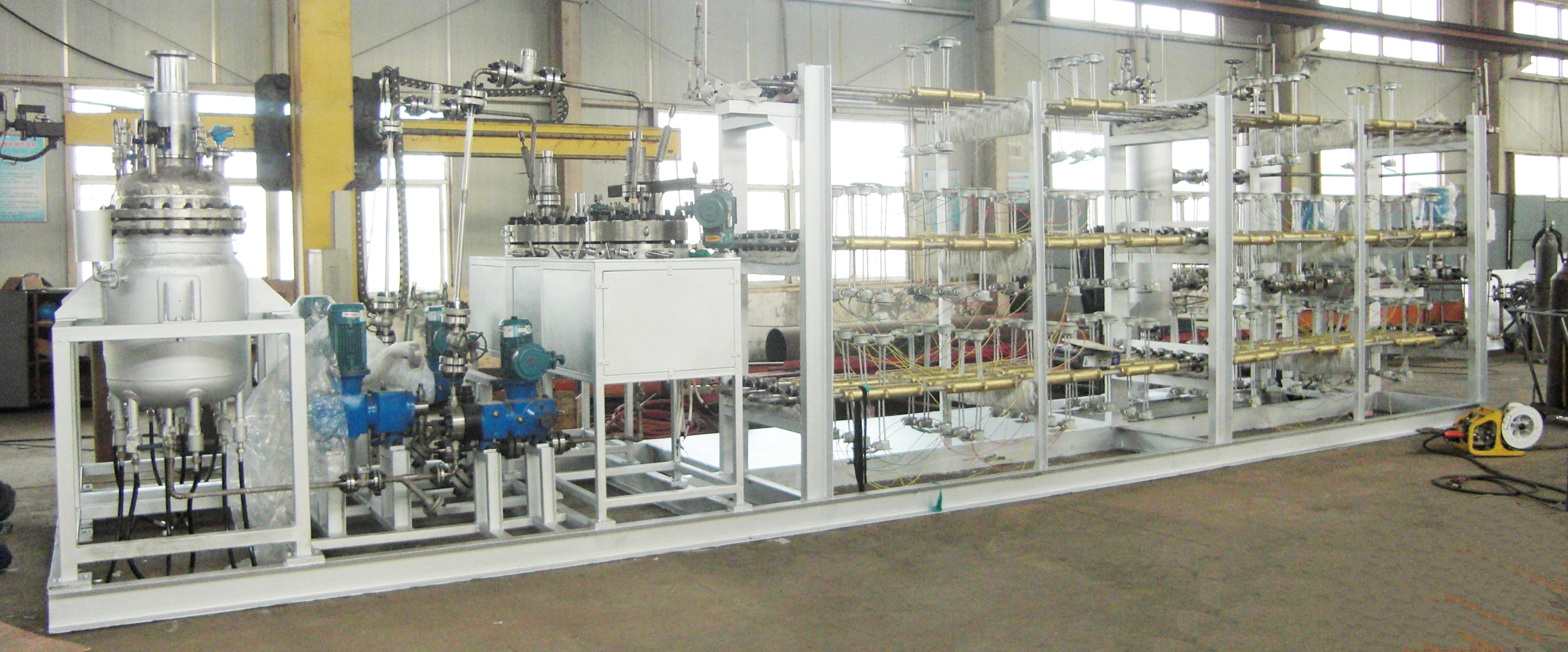 加氫反應分為吸熱反應和放熱反應,有些加氫反應在反應過程中會釋放大量的熱能。為了生產安全,并及時降低釜內溫度,有些工藝要求釜內配大面積的冷卻盤管。此時單層冷卻盤管無法滿足工藝要求,需要雙層或更多層盤管有效及時降溫。正威機械生產的6層盤管內配吸氫攪拌槳,加…
